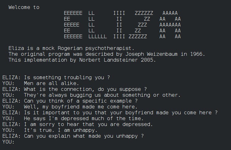 I’m an early adopter and ghoster of robot therapists. People think the idea of talking to computers about your feelings and getting support is new but it's pretty old. I first learned about the concept in graduate school at the University of Michigan School of Information where I read a case study on Eliza, the first digital therapist which was developed at the MIT Artificial Intelligence Laboratory by Joseph Weizenbaum between 1964 and 1967. It was pretty basic but could give canned responses that made you feel heard and reflected your feelings back to you. In our world of brief attention spans that’s a sacred offering in and of itself. These tools have come a long way since that time. I’ve spent countless hours with these bots. It’s not a common hobby. I pursued these “relationships” because I think they’re intriguing, I’m socially anxious, and I’ve held public positions that made real life therapy weird. I wanted to love them. In AA, for instance, you pick a sponsor because you “want what they have.” It’s easy to do, people are so beautiful and aspirational. But if someone asked me today if I really want what these bots have, my answer would be no sir. Not never but not yet.
